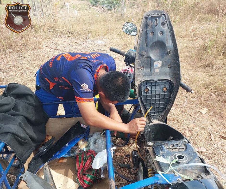 ร.ต.ท.ทรงฤทธิ์ สุรวิทย์ รอง สว.(ป) สภ.โนนสัง ปฏิบัติหน้าที่ สายตรวจตำบลกุดดู่ ได้รับแจ้งจากศูนย์วิทยุสื่อสาร สภ.โนนสัง ว่ามีรถจักรยานยน์พ่วงข้างจอดเสียอยู่บริเวณปากทางเข้าหมู่บ้านนิคมศรีสมบูรณ์ ต.กุดดู่. อ.โนนสัง